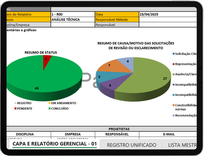 • Registro de pendências e relatórios de acompanhamento
